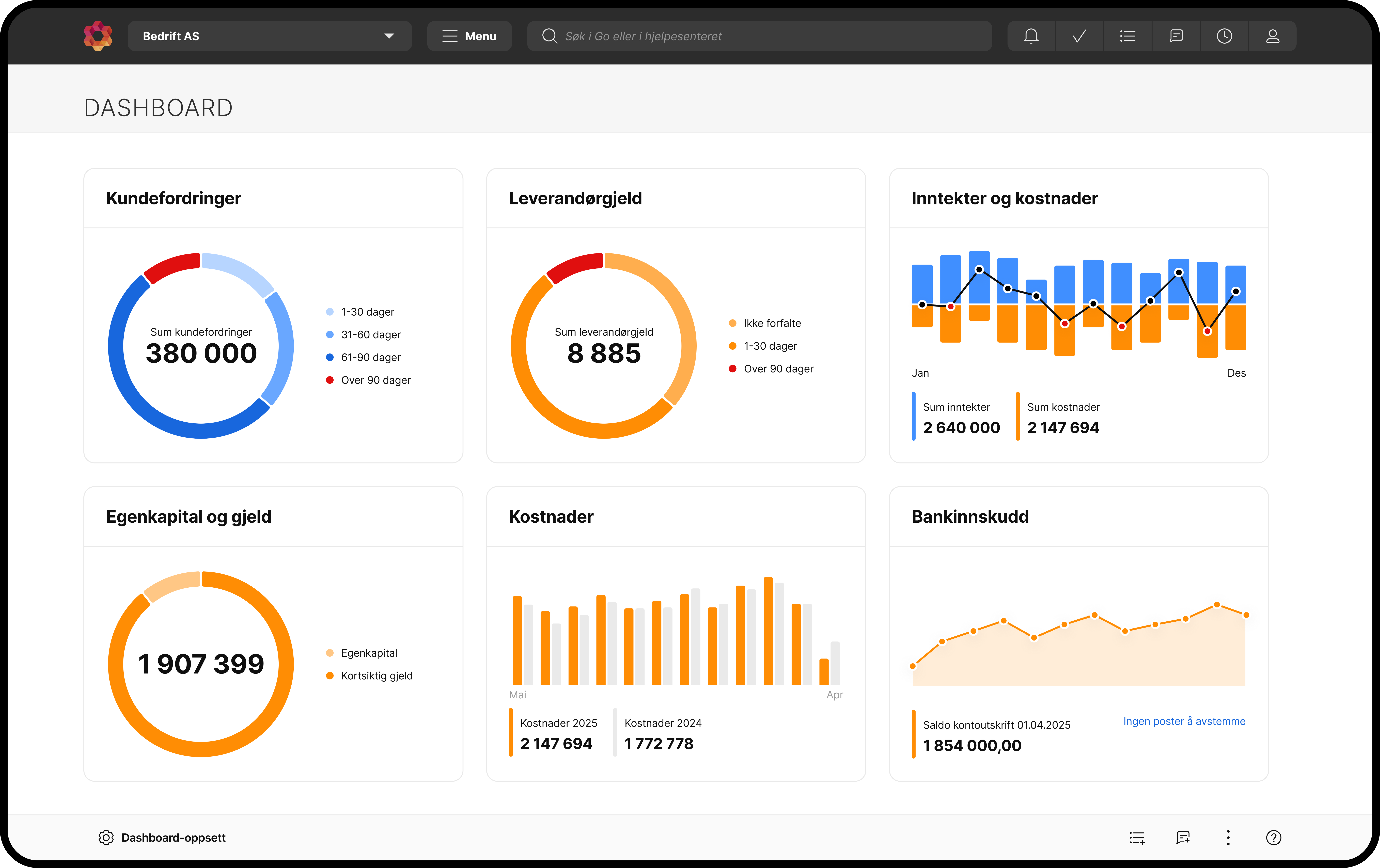 Med PowerOffice Go får du full kontroll på økonomien gjennom et intuitivt brukergrensesnitt. Det er enkelt å komme i gang, og systemet visualiserer det du trenger å vite gjennom lettfattelige grafer i eget dashboard. Du kan bruke mindre tid på å flytte penger med et effektivt system for fakturering, betaling og lønn.